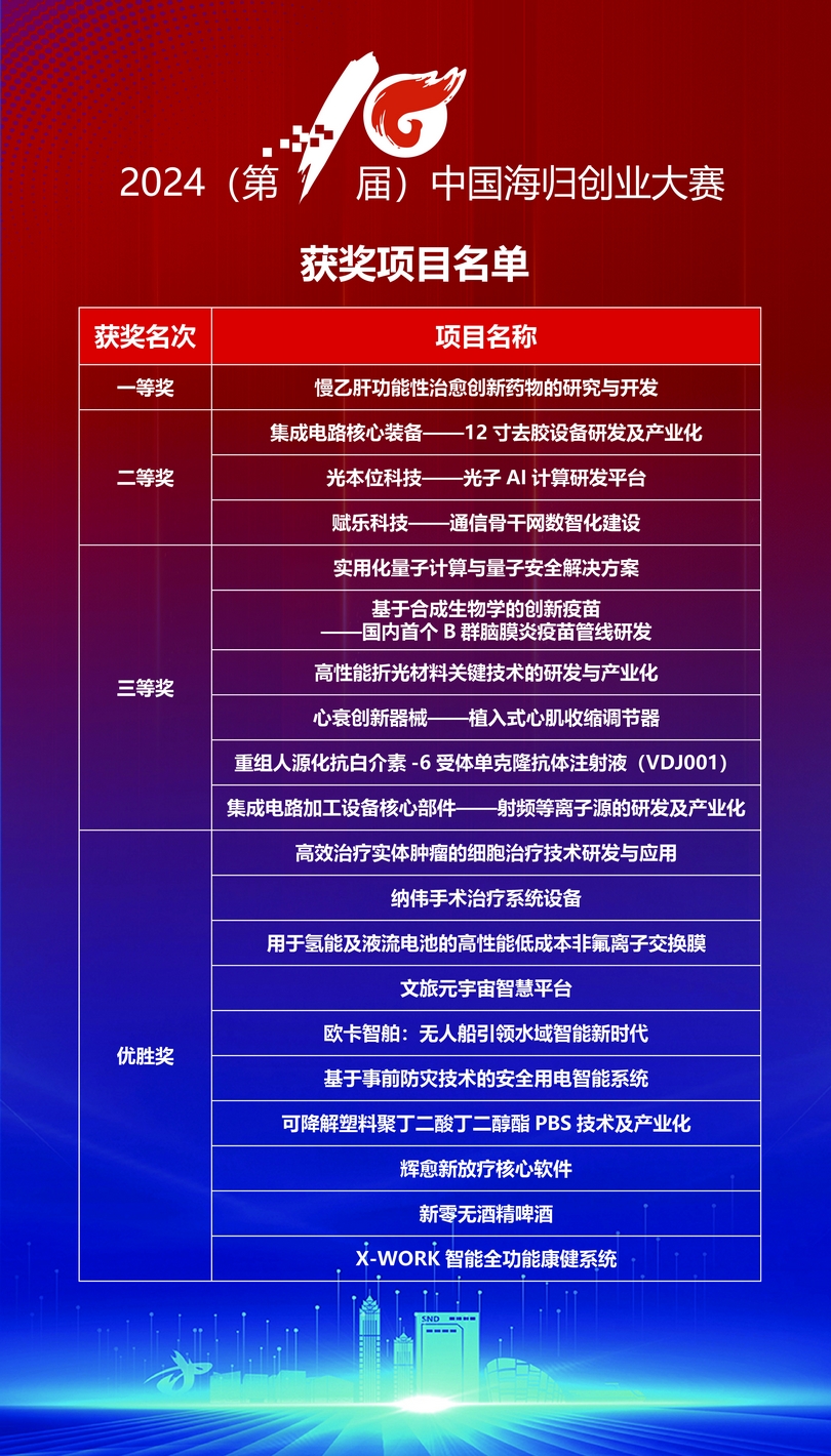 復(fù)賽項(xiàng)目分為4組進(jìn)行路演,經(jīng)來(lái)自華軟資本、啟迪創(chuàng)投、杉杉創(chuàng)投、璞躍中國(guó)、晟唐創(chuàng)投、華鍔投資、中信建投、源起基金、民生證券等機(jī)構(gòu)的28位專(zhuān)業(yè)評(píng)委,從團(tuán)隊(duì)、技術(shù)、市場(chǎng)、財(cái)務(wù)四個(gè)維度進(jìn)行現(xiàn)場(chǎng)評(píng)分,共有20個(gè)項(xiàng)目晉級(jí)決賽。在決賽中,由來(lái)自中泰證券、財(cái)通創(chuàng)新、毅達(dá)資本、梅花創(chuàng)投、海匯投資、順融資本、創(chuàng)客共贏基金的7位資深投資人對(duì)晉級(jí)項(xiàng)目進(jìn)行最后評(píng)定。最終,“慢乙肝功能性治愈創(chuàng)新藥物的研究與開(kāi)發(fā)”項(xiàng)目獲得一等獎(jiǎng),“集成電路核心裝備——12寸去膠設(shè)備研發(fā)及產(chǎn)業(yè)化”“光本位科技——光子AI計(jì)算研發(fā)平臺(tái)”“賦樂(lè)科技——通信骨干網(wǎng)數(shù)智化建設(shè)”3個(gè)項(xiàng)目獲得二等獎(jiǎng),“實(shí)用化量子計(jì)算與量子安全解決方案”等6個(gè)項(xiàng)目獲得三等獎(jiǎng),另有10個(gè)項(xiàng)目獲得優(yōu)勝獎(jiǎng)。