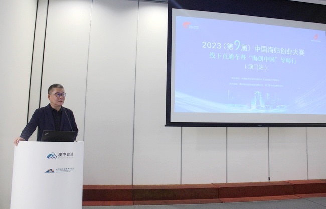 5月19日,2023(第九屆)中國海歸創(chuàng)業(yè)大賽線下直通車暨海創(chuàng)中國導師行活動(澳門站)在澳門青年創(chuàng)業(yè)孵化中心成功舉辦。本次活動由中國技術(shù)創(chuàng)業(yè)協(xié)會留學人員創(chuàng)業(yè)園工作委員會主辦,澳中致遠投資發(fā)展有限公司、澳門青年創(chuàng)業(yè)孵化中心承辦。中國技術(shù)創(chuàng)業(yè)協(xié)會副理事長、留學人員創(chuàng)業(yè)園工作委員會專職副會長兼秘書長郎靖,留創(chuàng)園工委會副秘書長胡頌華,澳門青年創(chuàng)業(yè)孵化中心綜合業(yè)務部副總監(jiān)徐美珊及3位評委導師出席活動。
