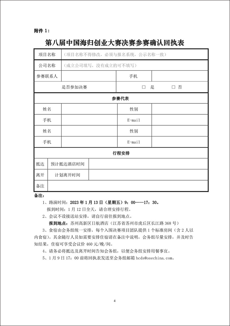 附件1:第八屆中國海歸創業大賽確認參賽回執表