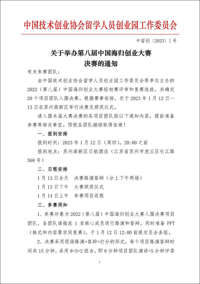 關于舉辦第八屆中國海歸創業大賽決賽的通知